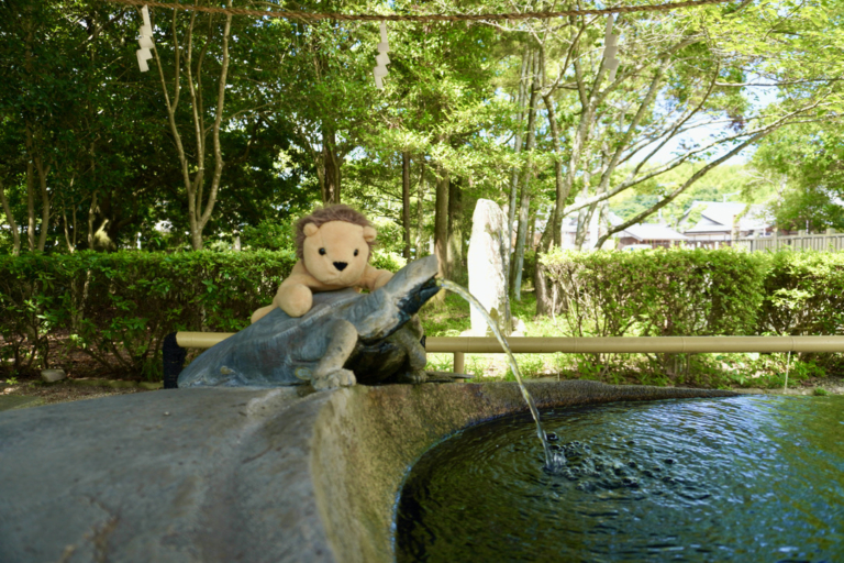 巨石を削って出来た鉢はそれ自体が亀の形に見え、水も長寿を象徴する亀の口から出る形になっています。