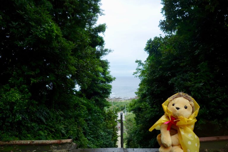 ・この日は雨だったから、僕は仕方なくかっぱを着て、自分で歩かずに階段を登った。本当だったら一気に登れるんだ。ガオ